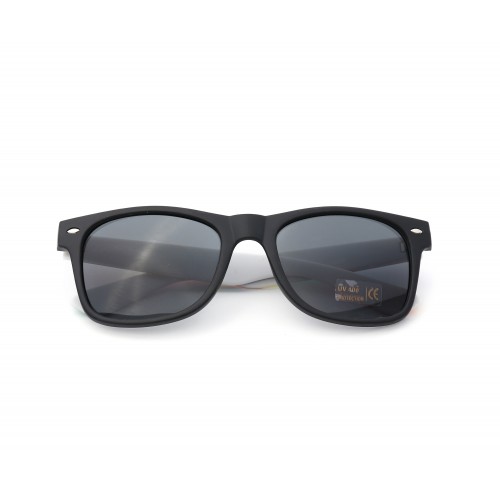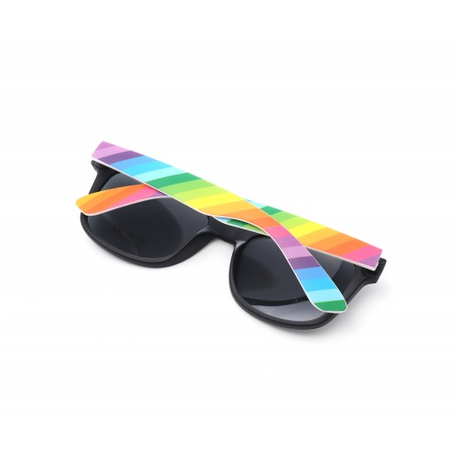 Colourful Gay Pride Drifter Style Sunglasses in a retro design. Features a matte black colour frame with rainbow arms. These conform to UV400 and look and feel great.
