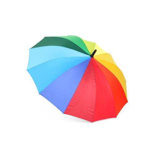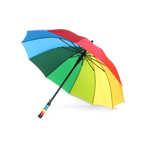 Gay Pride Style Rainbow Umbrella In Bright Colours. 12 Panel Design. Quick Release Button. Plastic Handle. PVC Top.