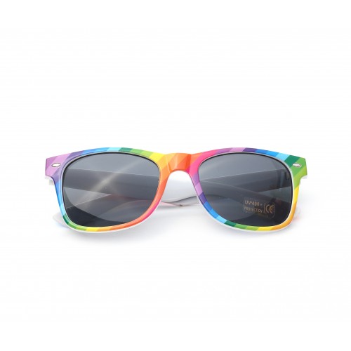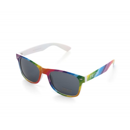Colourful Gay Pride Drifter Style Sunglasses in a retro design. Features a rainbow colour frame and arms along with 'Pride' written on each side.These conform to UV400 and look and feel great.