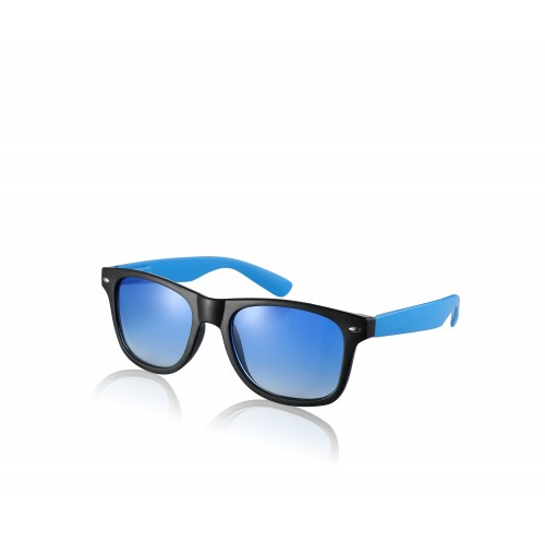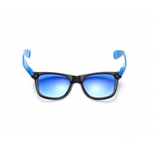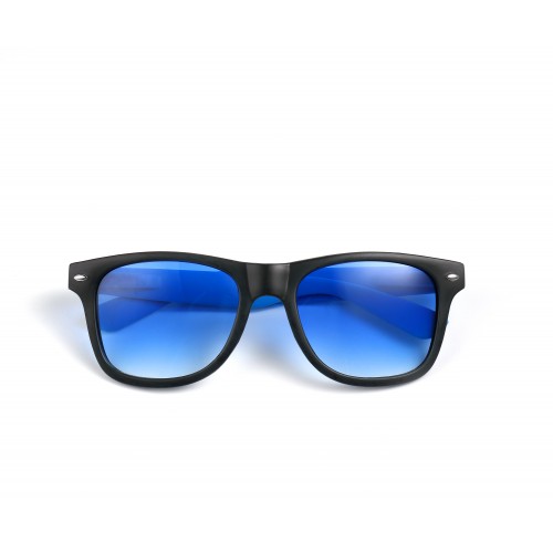 2-Tone Black & Blue Drifter Style Sunglasses with clear lens. Popular Retro style glasses design. Retractable Engineered Arm Protection Mechanism with UV 400 Sun Protection Lenses. These shades have a retro shape and decades worth of street cred.
