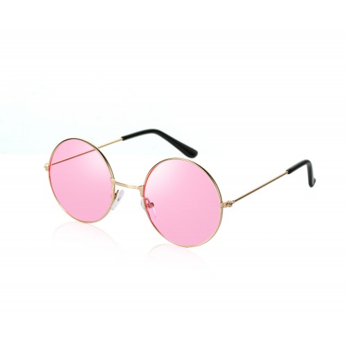 John Lennon Style Pink Flat Lens Round Sunglasses UV400 Protection (Pack of 3)