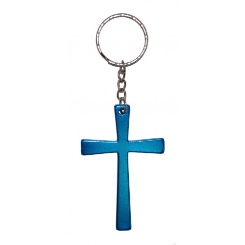 Christan Cross Light Blue Metal Keyring